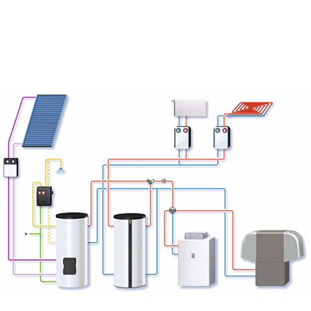 Im Buderus System ist Logano plus SB105 um weitere, regenerative Wärmeerzeuger erweiterbar. Zum Beispiel mit einer Solaranlage und einer in die Regelung Logamatic EMS plus integrierte Solarfunktion mit den Solarmodulen SM50/100/200.